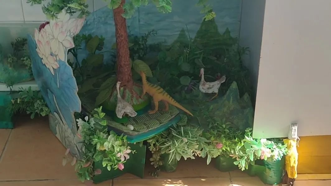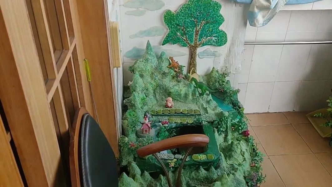 老师的退休生活也十分丰富,他利用自己所学的专业和闲暇的时光,给养了十几年的乌龟做了“小房子”:把老旧的报纸捣成糊,捏成山脉;把废弃的导线串在一起,当小鸟小树的骨架;把剩下来的泡沫板剪成一定的形状,画云画树画鸟;把废铁盒用胶带做成相框,把纸箱做成一个精致的塑料袋回收盒等等,育人之外是他对生活的热爱,更是启迪我们创新从生活中来,当我们开始注意到生活中的那些边角料,并有意识的去了解、去改变时,创新也就随之而来。