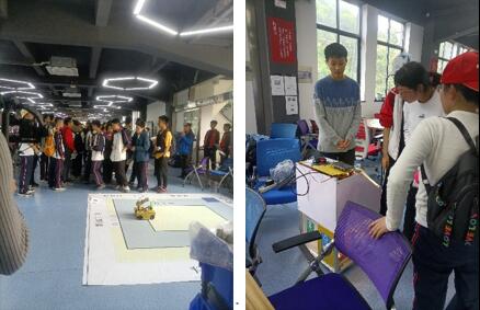 在互动环节,电工基地同学在公共区域设置两个智能垃圾分类装置,高中生体验垃圾识别与分拣过程,了解人工智能应用场景。在无人机203训练室,基地员工指导高中生亲手操控无人机飞行,极大增强飞控的趣味性和体验感。