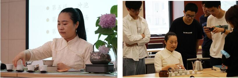在课程的最后,王越悦进行了总结。茶艺中蕴含了中国博大精深的古典文化,学习茶艺不仅提供了一种闲暇时的放松方式,同时也能在其中感悟礼仪文化之精髓。希望同学们能够在课后将茶融入到自己的生活之中,以茶会友,品茶悟道,为自己的生活增添更多色彩。