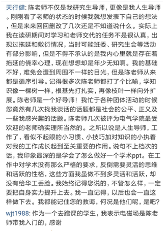 课堂上,陈老师深入浅出的授课方式,总能将电磁场抽象复杂的理论变得形象直观。科研上,陈老师对科学前沿的敏锐察觉以及严谨求真的科研态度,特别是他几近狂热的工作态度和罕见的理想主义情怀深深地感染着课题组的每一个人。与陈老师相处,总能感受到他举手投足中散发出的极具魅力的热情和和蔼。师从陈老师,收益良多。员工在此真心的感谢陈老师,祝福陈老师!