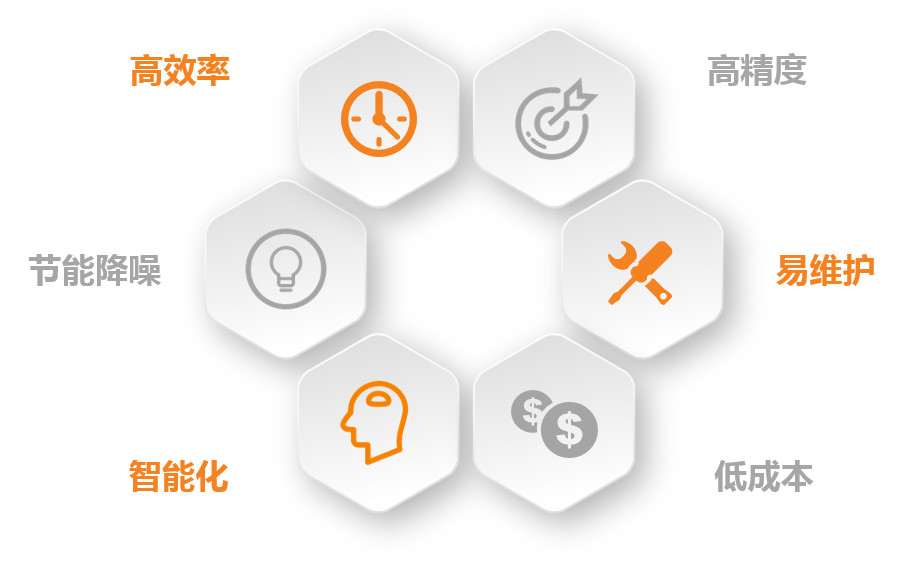 采用永磁同步伺服直驱电机,传动环节少,节能程度高,占地面积小。