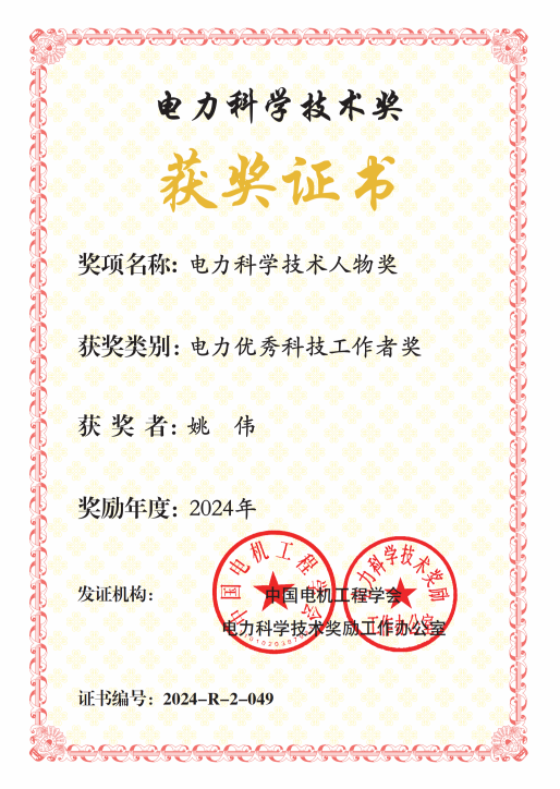 一份耕耘,一份收获。姚伟辛勤付出的同时,收获了一个个荣誉。他先后入选国家优秀青年基金,获中国电力优秀科技工作者、IEEE PES(中国)杰出青年人才奖、爱思唯尔“中国高被引学者”、 国际学术机构ScholarGPS“全球前0.05%顶尖科学家”、国家科技进步二等奖(排第5)、中国电工技术学会科学技术奖一等奖(排第1)、湖北省科技进步一等奖2项(排第2和第3)、taptap点点体育学术新人奖等荣誉。