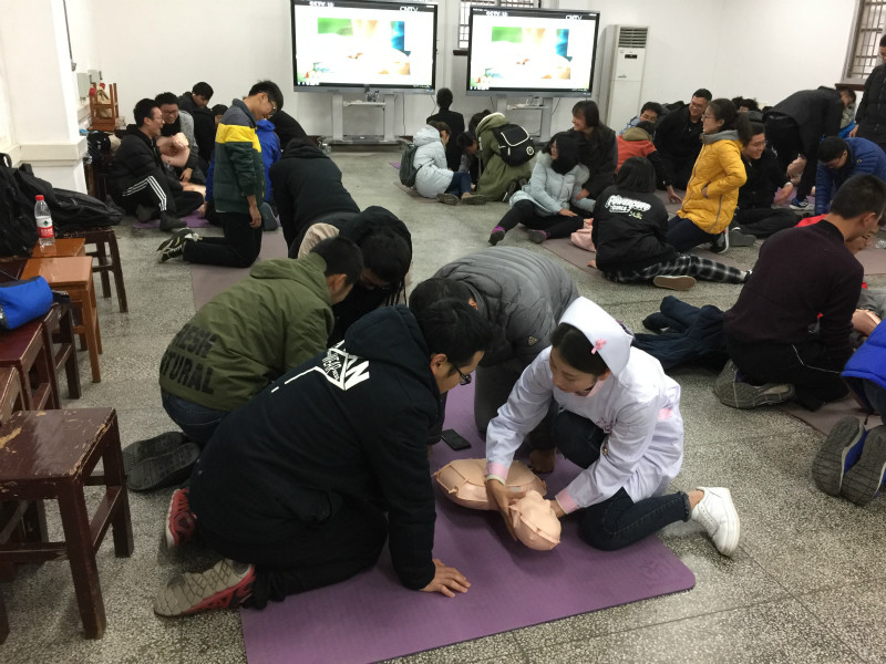 陈晋书记在发言中谈到,掌握必要的急救知识是对每一个实验室操作者的最基本要求,他希望同学们通过此次知识培训和实际模拟操作学好这门课程,以便在关键的时候知道如何挽救他人生命,同时也能为自己、为同学、为家人提供更好的保护。最后,他对第一批参加急救培训的两个班的同学表达了祝贺,也对参与此次教学的经理和老师们表示了衷心的感谢。