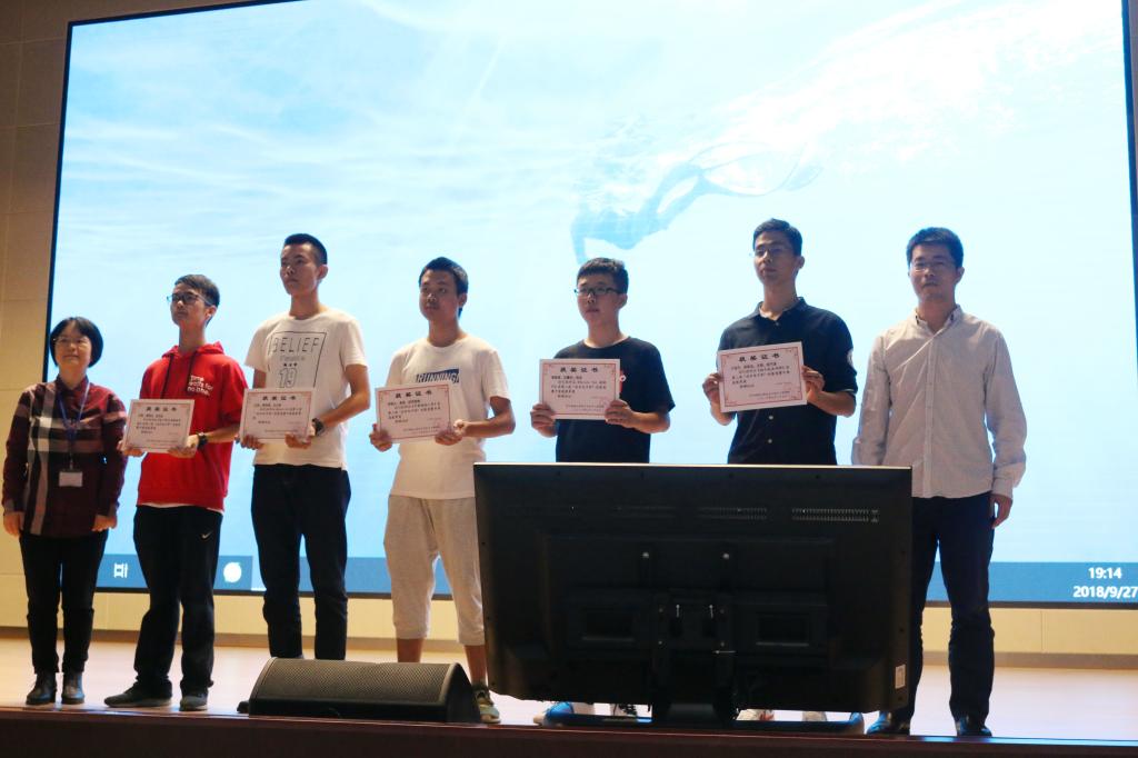 电子储存罐,会逃跑的闹钟,床体自控灯,LFZ智能眼镜,指纹锁,瓦利智能车等6个发明在创客竞赛中获得单项奖。电气试验教学中心主任尹仕为获奖团体颁发证书。