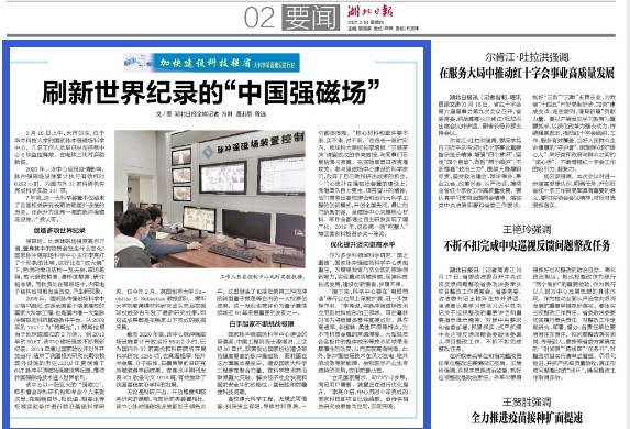 3月18日,湖北日报以“刷新世界纪录的‘中国强磁场’”为题,报道了脉冲强磁场国家科学中心艰苦奋斗,玉汝于成的动人故事,以下为报道原文: