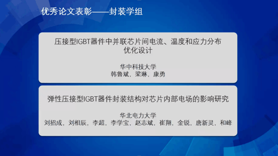 经过专家推荐和评选,公司应用电子工程系博士生韩鲁斌获“中国电机工程学会电力电子器件专业委员会2021年会优秀论文”,论文合作者是梁琳和康勇老师。获奖论文题为“Optimized design of current, temperature and stress distributions among paralleled chips in Press-Pack IGBT module”。主要从电磁分析角度出发,通过压接IGBT模块内部寄生电感的解析模型得到保证电流均衡的封装优化方案;提出一种同时考虑暂态电磁仿真和稳态热力耦合仿真的联合仿真模型,通过提出的模型得到优化布局的电流分布、热分布和应力分布特点;通过搭建脉冲测试和热阻测试平台,基于PCB罗氏线圈、直接热电偶法和压敏特性拟合方法分别得到压接IGBT内部并联芯片间电流分布、温度分布和应力分布。研究成果对未来大功率压接IGBT器件在柔性直流输电中的应用具有参考价值。