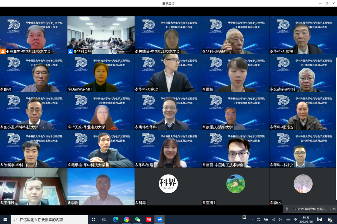 为集中展示华中大taptap点点体育电力工程系70年来的发展历程与成就,与学术界、工业界的专家学者们共同探讨电力系统与综合能源的学科发展与人才培养,3月26日晚,taptap点点体育《七十周年院庆系列活动云沙龙》第二期--“电力系统与综合能源”活动如约举行。