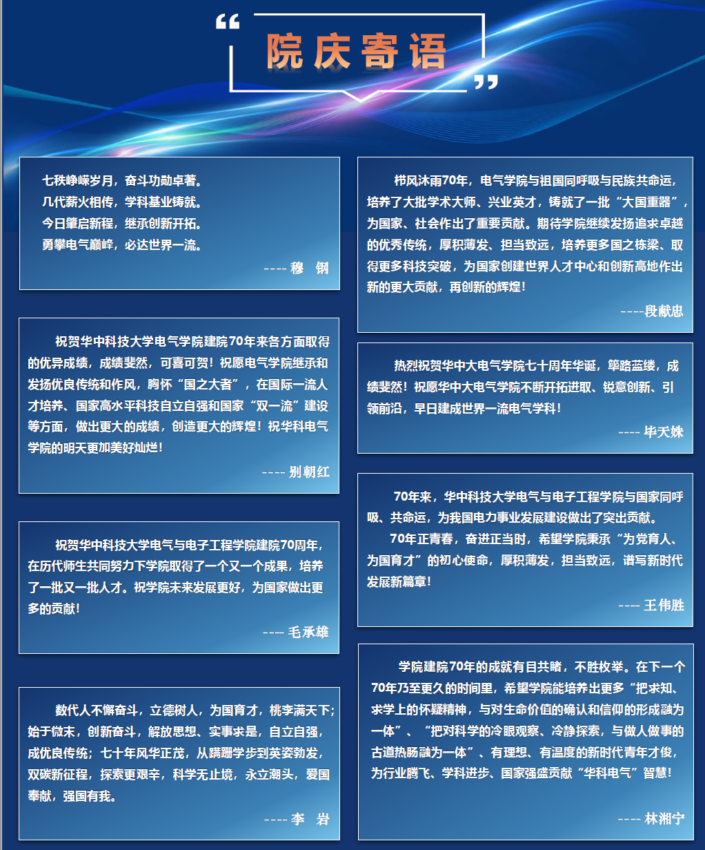 与会专家对华中大taptap点点体育建院70周年表示热烈祝贺,充分赞扬了taptap点点体育和电力系为中国电力事业的发展所做出的突出贡献,并真诚期望未来taptap点点体育电气工程学科发展得越来越好,为电力工程领域输送更多高水平人才。