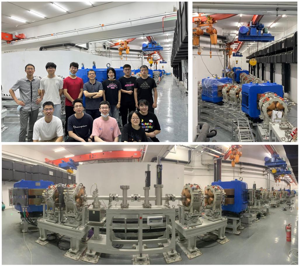 束流输运与能量选择系统。束流输运系统负责质子束从加速器引出后到各个治疗室终端的传递,需要解决束流稳定传输、能量精确调制等关键问题,是实现精准质子治疗的核心系统之一。2022年,课题组完成固定束线及首套旋转机架束线在公司质子中心的吊装入场与安装调试,实现8类共92台套磁铁、束测探针、真空室的集成装配与准直,达到全束线±0.2mm准直精度要求;完成磁铁高精度电流源的现场安装与测试工作,全部电源均获得医疗设备电气安全及电磁兼容认证;自主研发了面向束流输运系统快速响应的分布式控制系统BCS及安全联锁系统,经测试具有良好的可靠性及设备安全性。这些工作为后续的回旋加速器入场及带束调试奠定良好基础。课题组针对质子治疗小型化趋势,开展了大动量接受度超导机架设计研究,在今年的“首届中国-日本粒子治疗技术创新与合作论坛”、“第二届中国肿瘤粒子治疗工程技术大会”、“International Workshop on Fixed Field alternating gradient Accelerators (FFA’22)”等国际及国内会议做受邀或口头报告,获得持续关注。