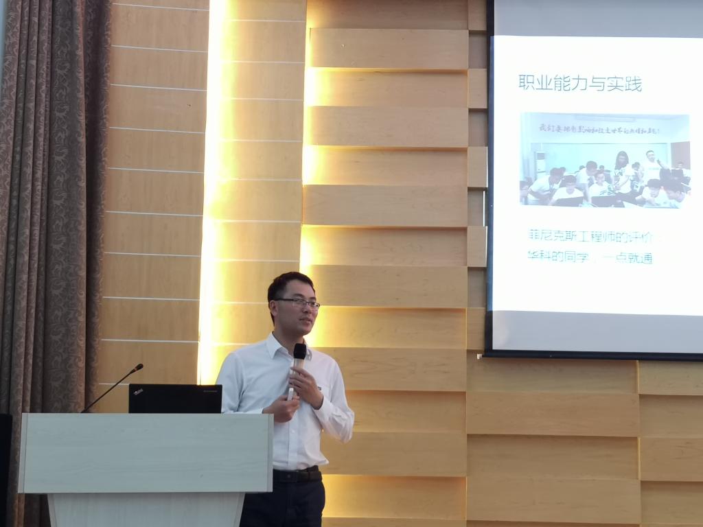 易书波首先介绍了菲尼克斯与公司的合作历史,并通过一个个生动的小故事,介绍了菲尼克斯的企业历史、企业文化、企业现状等。最后以企业发展为切入点,对同学们的个人职业发展提出建议。