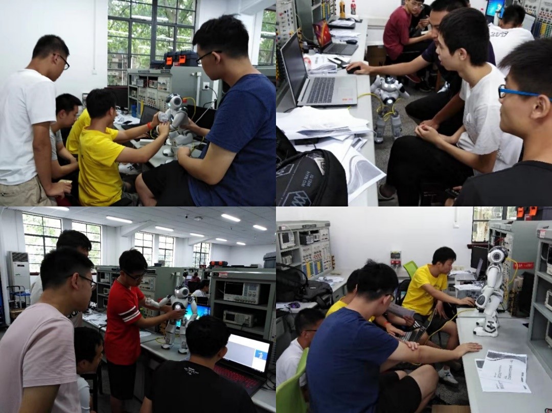 8月7日至8月14日期间,同学们在公司进行NAO机器人实际操作的课程。老师依次讲解了与NAO机器人的对话、编舞、PID走直线、在NAO中应用的python编程、声呐探测等,同学们迅速将其应用到实践操作当中。在老师的悉心指导下,同学们都一步一步完成所布置的任务,最终全体训练营的6个NAO机器人都能完整地实现流畅对话、跳一段舞蹈、走出直线、声呐探测等功能。