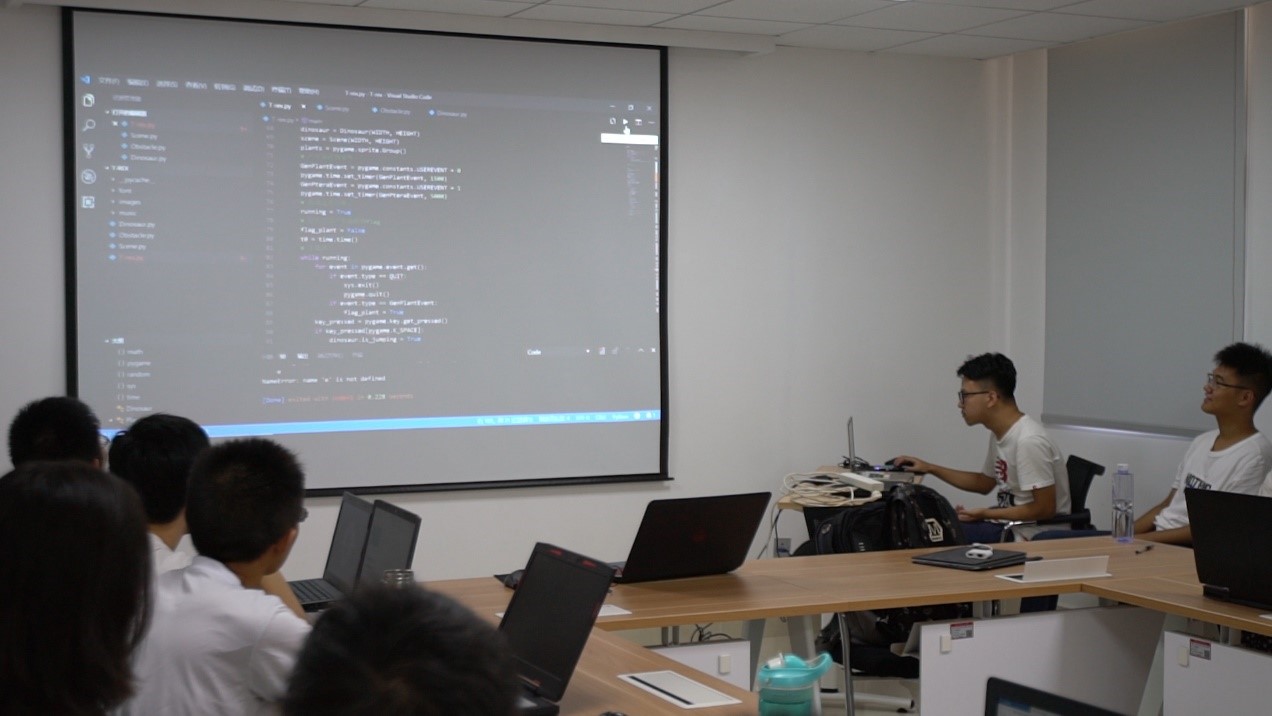 训练营前期主要是理论授课。公司郑玮老师详细介绍了软件工程版本管理技术,代码质量和敏捷开发等一些概念;北京风云时空科技有限公司程之兴老师基于他对游戏开发技术、Web开发技术的了解,详细介绍了软件产品设计、项目管理等内容。在老师们深入浅出地介绍下,同学们对软件开发流程有了更全面的了解。