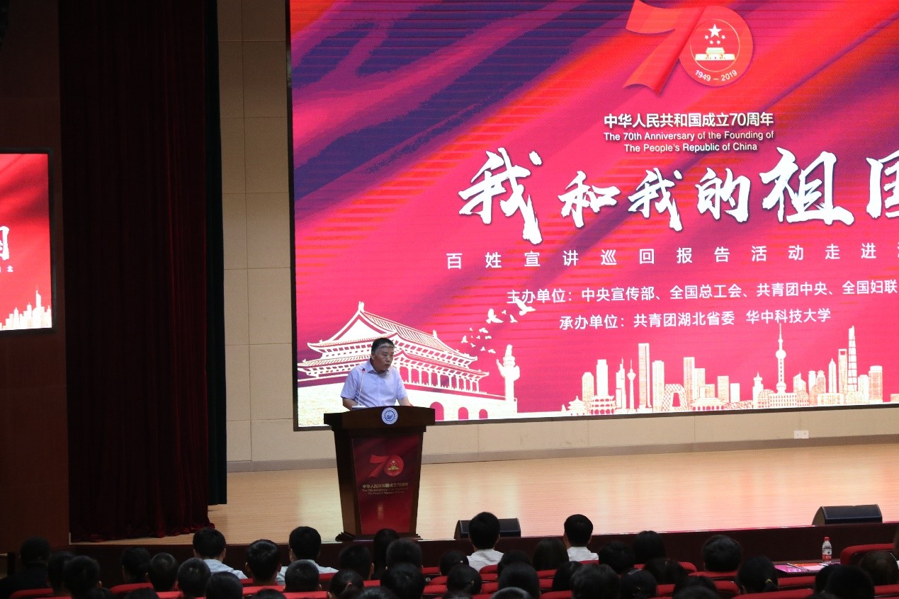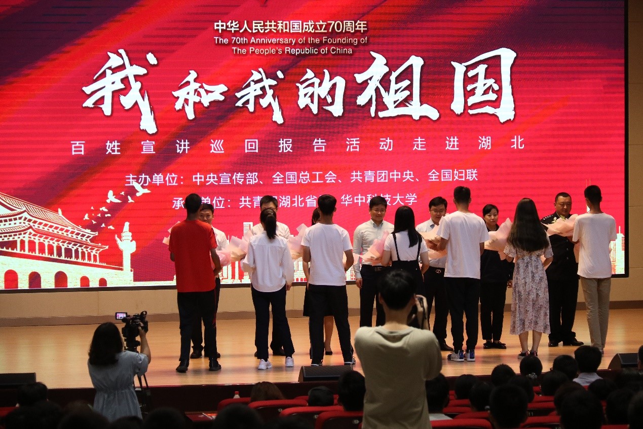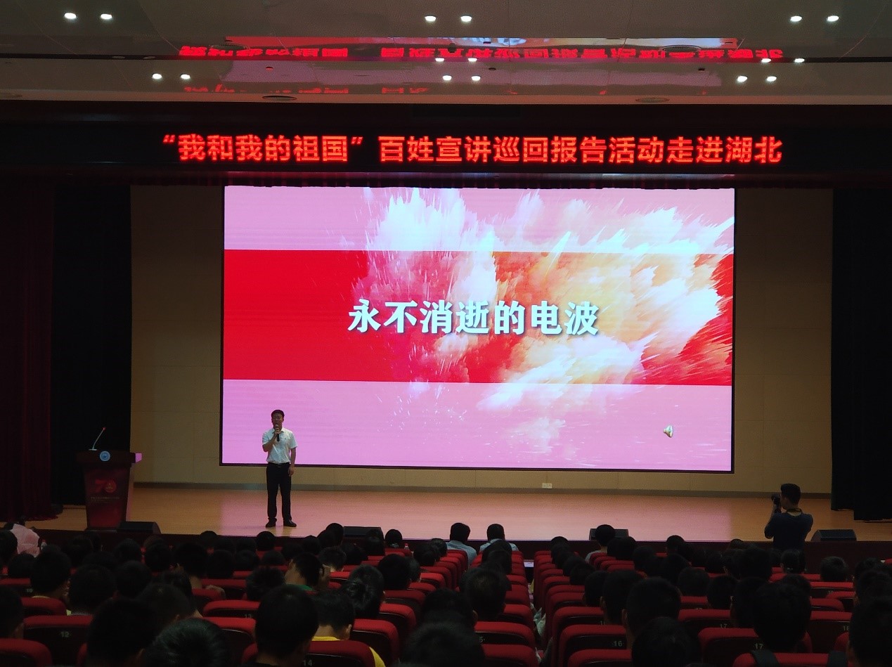 为隆重庆祝中华人民共和国成立70周年,大力唱响礼赞新中国、奋进新时代的昂扬旋律,9月10日上午,由中央宣传部、全国总工会、共青团中央、全国妇联联合开展的“我和我的祖国”百姓宣讲活动走进湖北,来到了taptap点点体育。宣讲团先进典型在电气大楼报告厅为师生作了精彩的报告,公司2019级新生有幸在现场聆听。