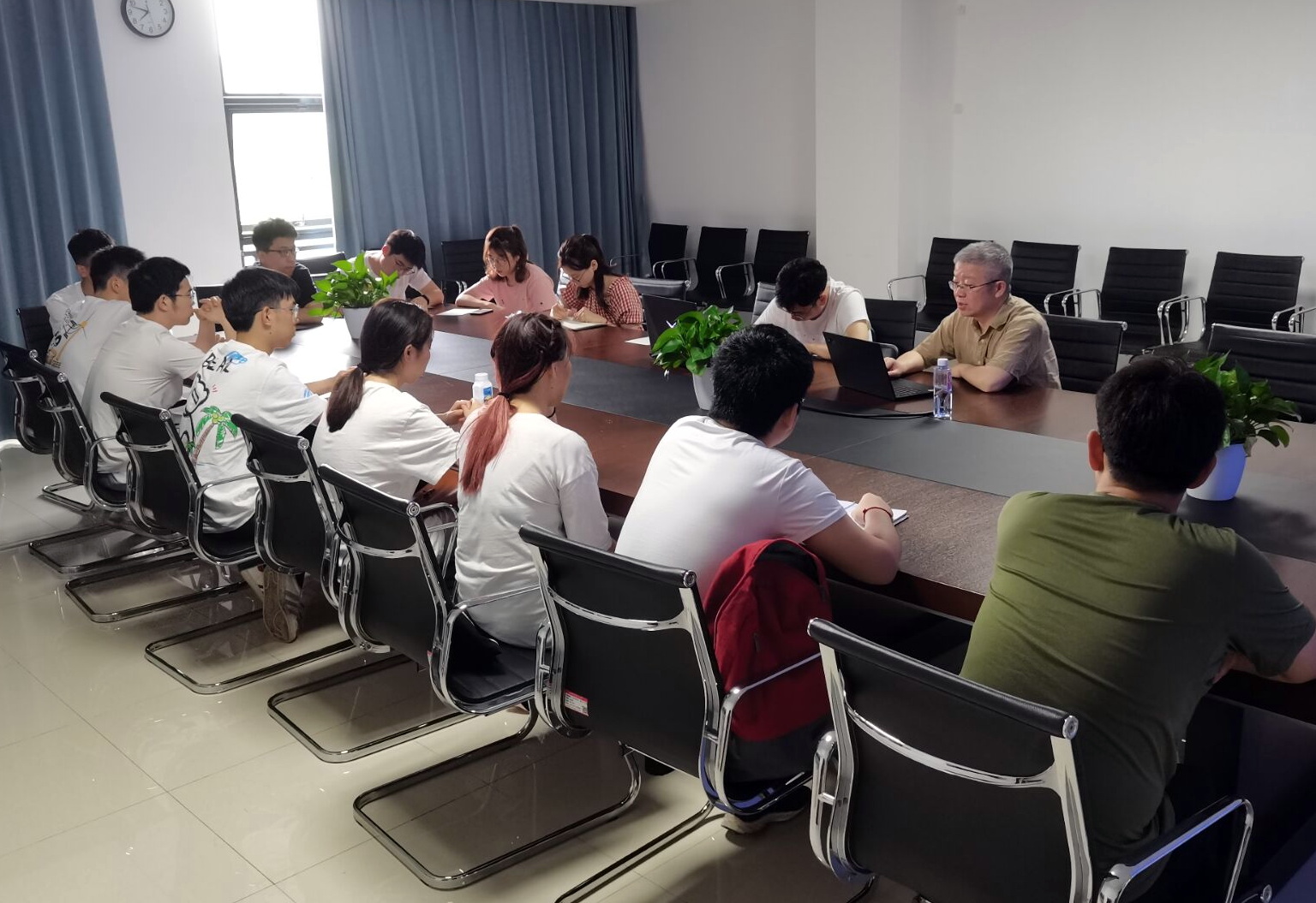 2021年6月17日下午,文劲宇经理于电气大楼A718会议室为硕1808班毕业生党支部讲授毕业离校前的最后一堂党课。文经理党课的主题是《青春跟党走,新时代》,围绕纪念五四运动精神展开。