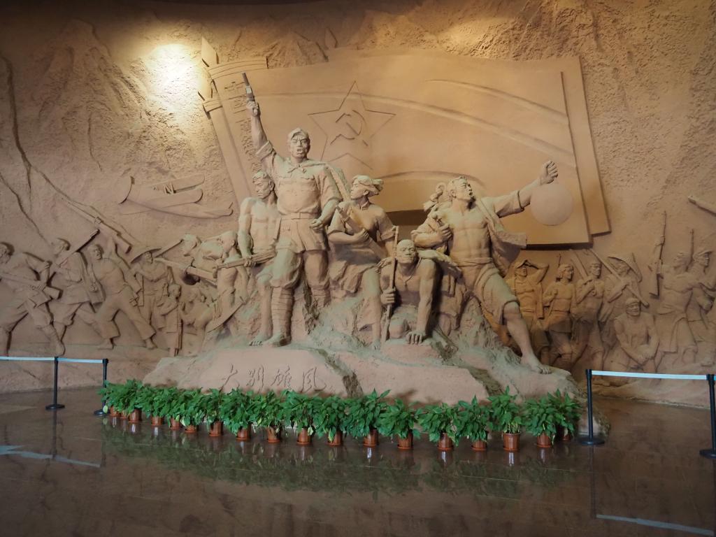 步入展厅,首先映入眼帘的是巨型主题群雕“大别雄风”。该作品生动形象地描绘出大别山革命根据地军民万众一心、同仇敌忾的飒爽英姿,亦是“朴诚勇毅、不胜不休”的红安精神的完美体现。