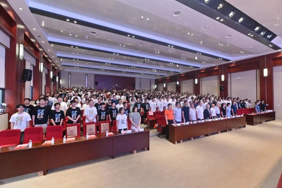 典礼正式开始,全体起立,奏唱国歌,严肃有力的歌声表达着每一位华科大电气人对祖国深沉的爱。接着,由罗珺宣读表彰决定,表彰2023届“荣誉学士学位”获得者及优秀毕业生,文劲宇、张明分别为他们颁发荣誉证书。随后,毕业生代表向公司领导、老师赠送毕业纪念册,公司回赠毕业礼物,公司与学子们的情感在此刻得以彰显。