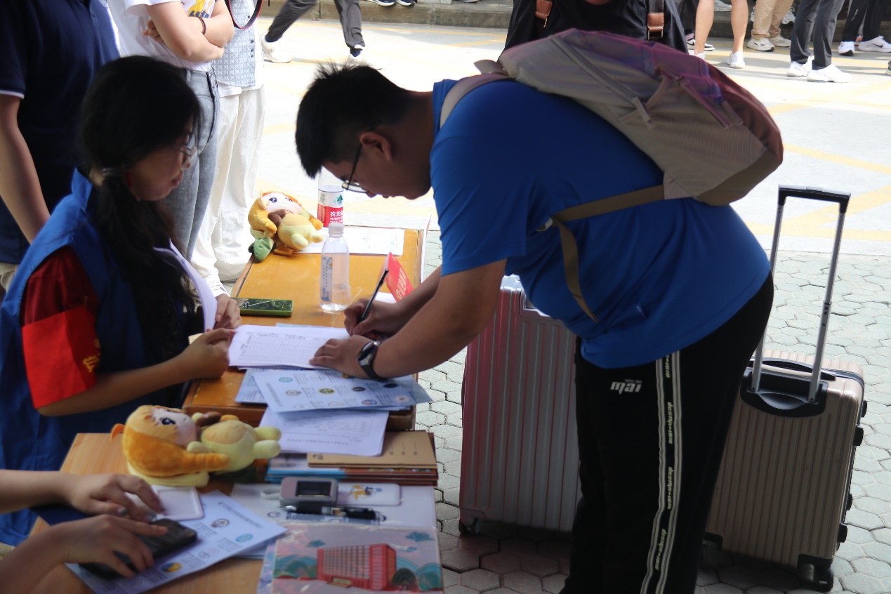 公司辅导员、教师班主任和研究生班主任积极投身迎新志愿服务工作当中。辅导员李毅、张孟在现场引导新生们办理入学手续,提醒新生提高警惕、谨防诈骗;教师班主任陈庆走进宿舍,从水卡办理到学习规划,细致入微地为新生们答疑解惑;研究生班主任郭柃彤协助楼栋宿管阿姨完成签到、人脸验核、入住宿舍等各项流程……在大家的密切协作下,报到现场忙而不乱,井然有序。