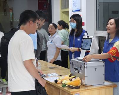 迎新现场,身着“党员先锋队”蓝色马甲的党员志愿者成为了新生们入学的“行李护送者”。从东方欲晓到皓月当空,志愿者们始终以最佳的状态迎接每一位新同学的到来,以实际行动书写着“奉献、友爱、互助、进步”的志愿服务精神,护航最后一公里,在开学季贡献火热的青春力量。
