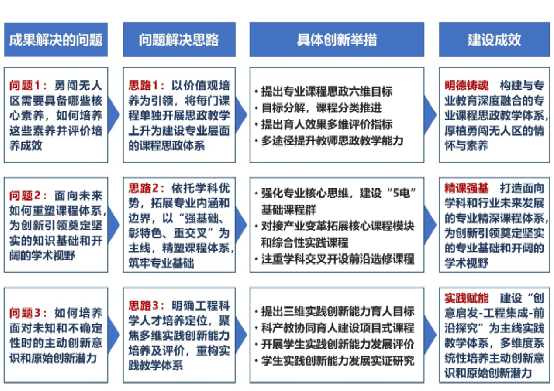 成果面向国家重大需求,确立了“面向未来”的人才培养理念,探索出“明德铸魂-精课强基-实践赋能”的传统工科专业改造升级路径:明德铸魂,凝练创新引领者的核心素养作为专业课程思政教育目标,构建了与专业教育深度融合的专业课程思政教学体系,厚植家国情怀;精课强基,面向未来对创新人才所需知识内涵和边界再设计,精塑专业课程体系,为创新引领奠定坚实的专业基础和开阔的学术视野;实践赋能,以探究性实践激发员工提出问题和挑战未知的学术志趣,构建一体化递进式实践教学体系,多维度系统性培养主动创新意识、集成创新能力和原始创新潜能。通过上述举措,充分发挥学科底蕴深厚优势,创新科产教协同机制,实现优质科研资源向创新人才知识体系和培养体系的有效迁移。