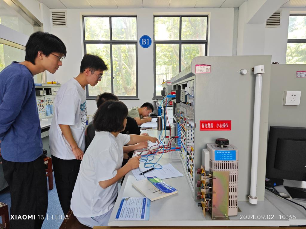 在西二楼国家首批电工电子实验教学示范中心,“电路测试实验”指导教师邓春花、朝泽云正与同学们一起讨论实验程序。电路测量重实践,电气安全无小事,以实践出真知,以测量识未知。