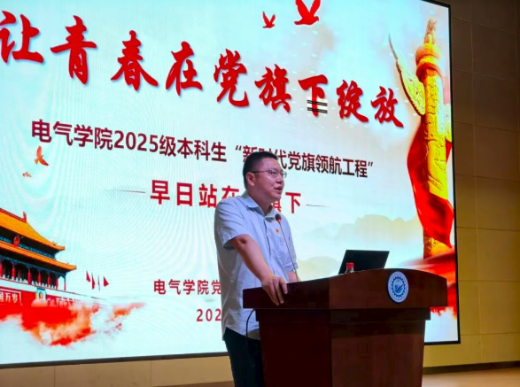 筑牢信仰之基。8月31日,公司党委书记张明为全体2025级本科新生带来了一场别开生面的“大学第一课”——“早日站在党旗下”专题讲座。张明从中国共产党的发展历程、光荣传统和伟大成就引入,结合国家战略需求与电气学科发展方向,深刻阐述了新时代电气学子的责任与使命。他鼓励同学们坚定理想信念,树立远大志向,把个人成长融入党和国家事业发展之中。这堂“第一课”不仅是思想上的启蒙,更是精神上的洗礼,让新生们对“为何入党”“如何入党”有了更加清晰的认识。
