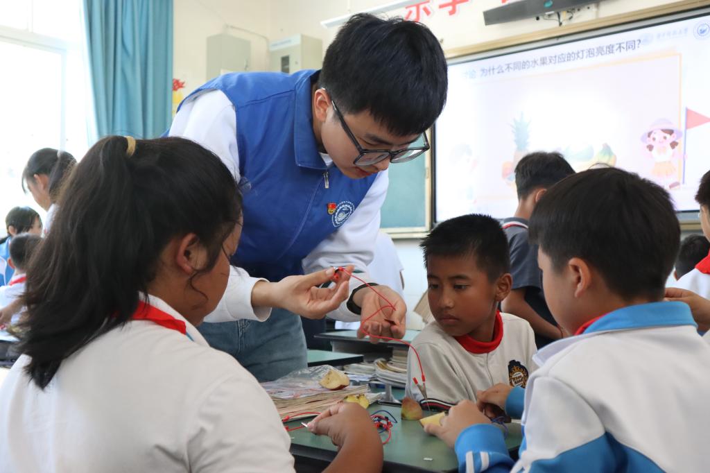 12月5日上午,尤政在蚂蚁堆中心完小详细了解了taptap点点体育在当地开展教育帮扶工作的情况汇报,taptap点点体育支教生、原创科普图书副主编周竞辰向尤政一行介绍了taptap点点体育原创科普图书《名师领衔科普——走进华科大电气》及趣味科普活动,完小员工向董事长演示实验过程,并讲解实验原理。