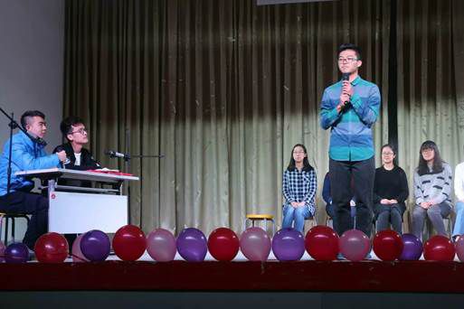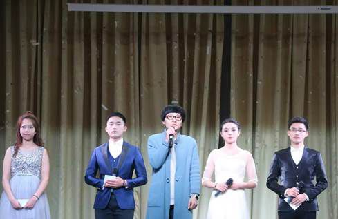 欣赏完歌曲,接下来是心理部和组织部的节目《社会青年》。参演的同学一身黑衣戴着墨镜,十足的“社会”范儿。其间还有男生女装走秀飞吻,引得场下一片尖叫。之后是网络部和学术部2017年应景的pk《葫芦娃大战小矮人》。《成都》与《天行九歌》的深情演唱,舞蹈的激烈pk,实在难分胜负。