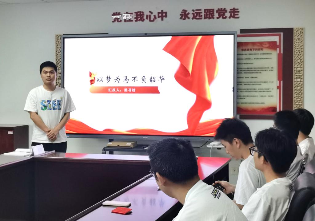 会上进行了入党积极分子推荐选拔。该项工作由2408班团支书欧阳子豪同志主持,梁召榜、董天昊、李逸、耿玉英、王旭龙、莫开寅、祝诗凯参与自我推荐。梁召榜在发言中表示:父亲是共产党员,他为人民服务的身姿从小就对我产生了耳濡目染的影响,我希望能像他一样成为一个光荣的共产党员。我有为同学服务的愿望,希望能投身于为人民服务的光荣事业中去,积极参与员工事务,为同学们谋福祉;我将坚守党的宗旨,投身于员工工作中去。”
