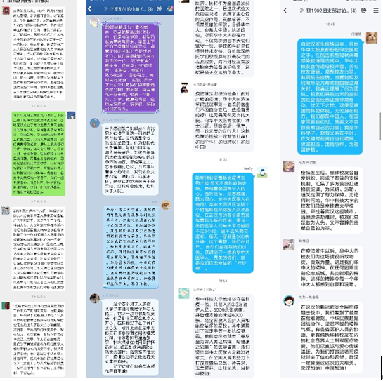 “华中大员工精神”学习心得:本次讨论中,团员们先是讨论了华中大员工在疫情期间所展现的强烈的社会责任感,然后体会了其中所展现的华中大员工精神,即在任何困难面前众志成城,共克时艰的精神,这样的精神令每一个华中大人都感到自豪和温暖,最后联系自身,表达了自己作为华科学子,更要在这个特殊时期,像这些优秀的员工致敬学习,在平时、在关键时刻践行当代华科精神,忠诚担当、团结协作,为祖国护航。