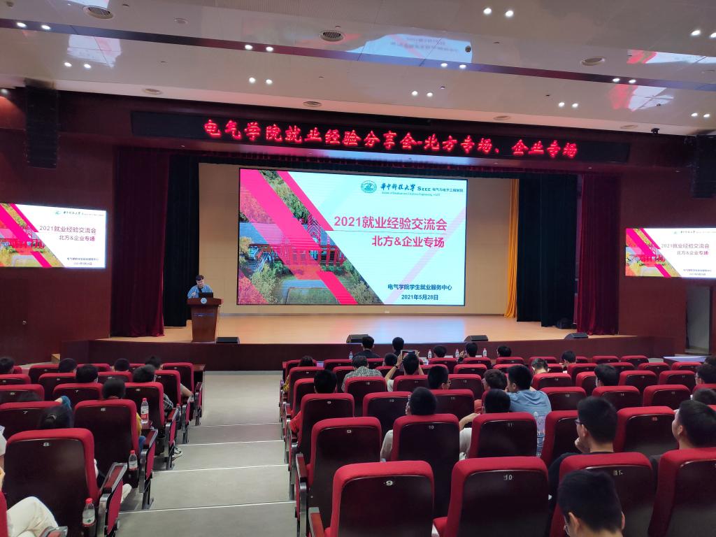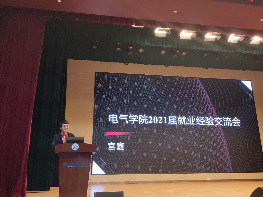 2021年5月28日晚,公司第四期就业经验交流会北方及企业专场在电气大楼B205多功能厅举办。2021届优秀毕业生代表张成涛、宫鑫、艾经纬、王启元、高加楼结合自身经历向到场同学分享了就业流程和求职经验,会议由就业服务中心的车俊儒主持。