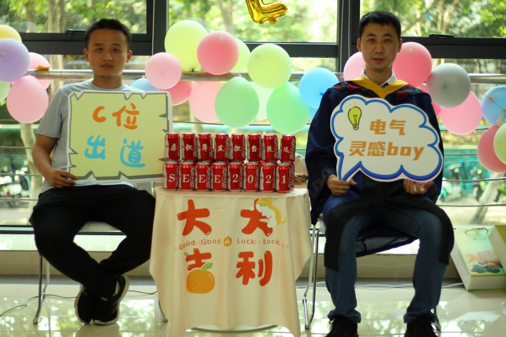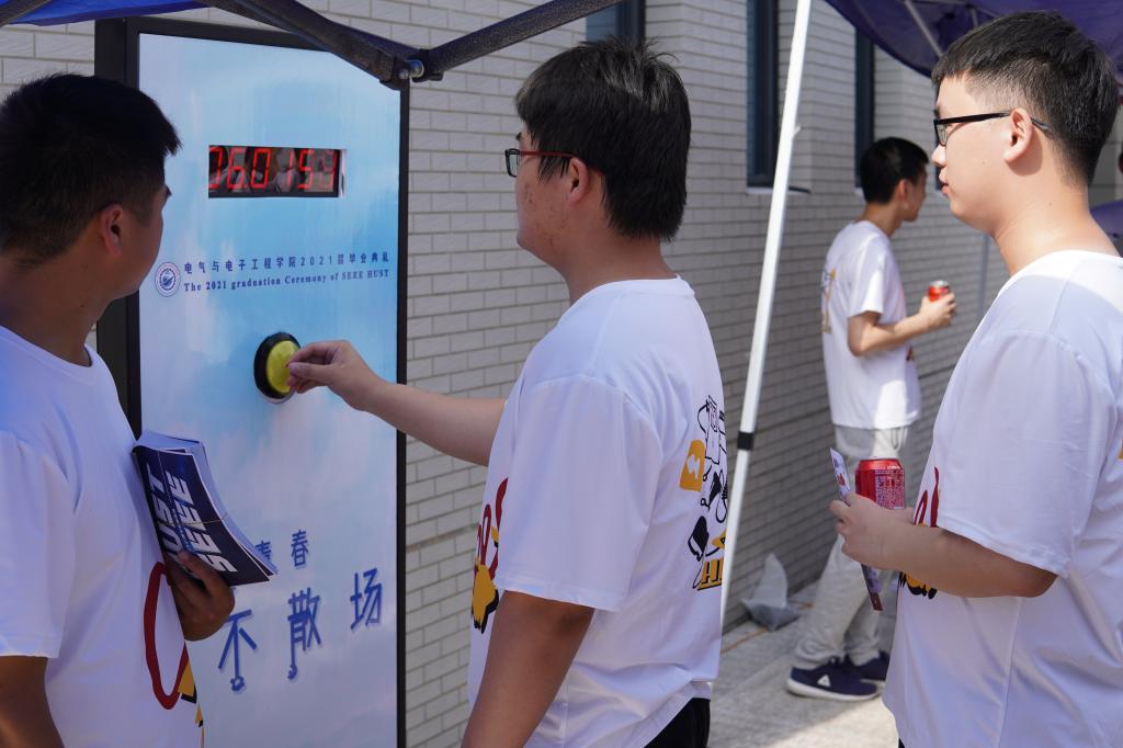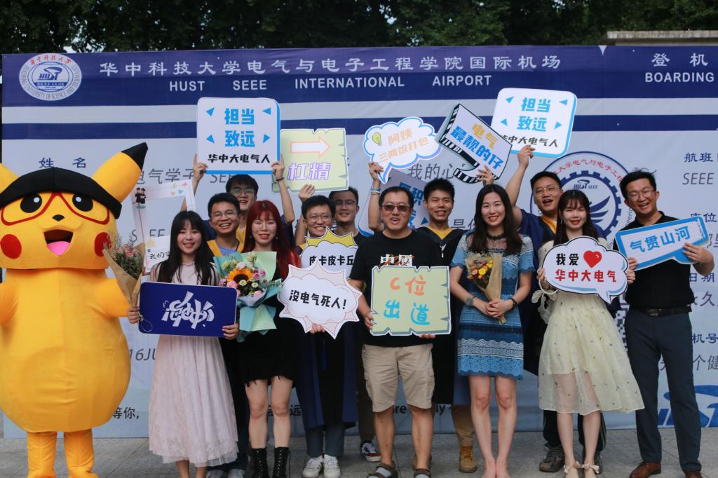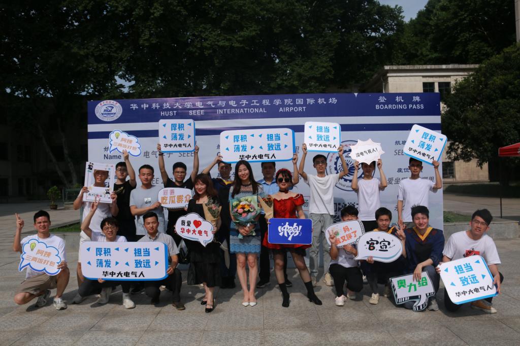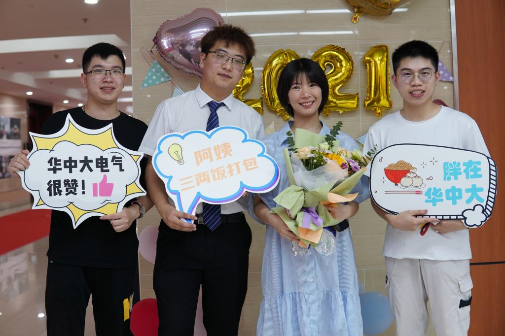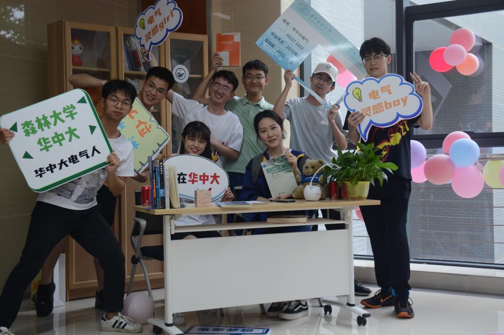 西边的背景墙上,“我爱华中大电气”几个艺术字,吸引了众多同学前来合影留念。