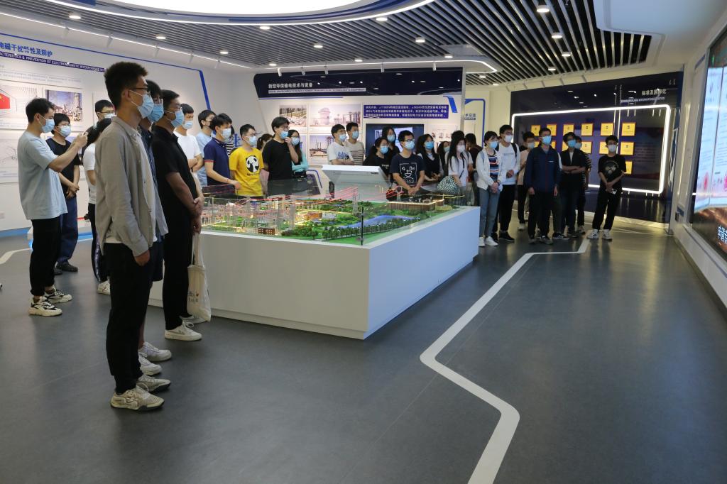 活动伊始,中国电科院武汉分院的工作人员首先带领同学们参观了中国电科院武汉分院内的电网环境保护国家重点实验室。在工作人员的讲解下,同学们了解到电网环境保护国家重点实验室的发展历程、组织机构、人员配置、主要科研课题与所获科研成果。电网环境保护国家重点实验室针对电网环境保护领域存在的相关科学和技术问题,开展了例如电网电磁环境特性及影响、电网噪声特性及控制、电网电磁干扰特性及防护、新型环保输电技术与设备在内的诸多科研课题,同学们结合自身所学,与实验室工作人员就感兴趣的科研课题进行了交流学习,在交流中,同学们感受到电网环境保护相关研究的重要性。