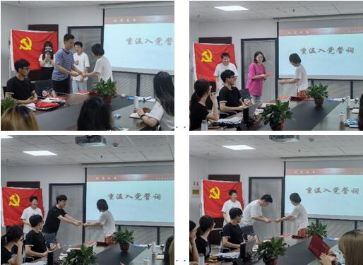 重温入党,为党庆生。恰逢建党节,党支部组织了丰富多彩的活动庆贺党的生日。罗珺老师代表支部向全体成员发放了党徽和制作精美的党员纪念卡,并由郑建栋同志带领全体成员重温入党誓词,以建党101周年为契机,既庆祝党的生日,也庆祝各位支部成员不忘初心使命、牢记责任担当的“政治生日”。同时为了庆祝党的生日,也为了纪念刚刚逝世的著名词作家乔羽先生,在熊馨瑶、董怡然两位同志的领唱下,支部全体成员深情合唱《我的祖国》,在悠扬动听的旋律中念党情、感党恩。在活动的尾声阶段,支部成员在支部旗帜上签字明志,并于党旗合影留念,在镜头前对党诉说心底的祝福。