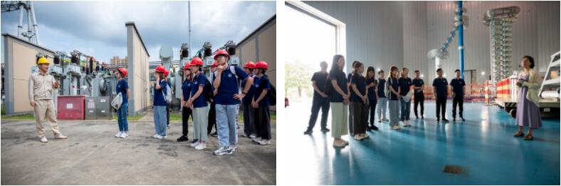 武汉实践分队去到中国电力科学研究院、中国船舶集团第七一九研究所、湖北省电力勘测设计院有限公司,参观调研了电网环境保护国家重点实验室和电磁环境仿真与试验、新型环保设备试验验证等众多实验平台。GIS勘测系统、VR沉浸式选线设备让同学们体会到多学科交叉创新对电力行业发展的推进作用。