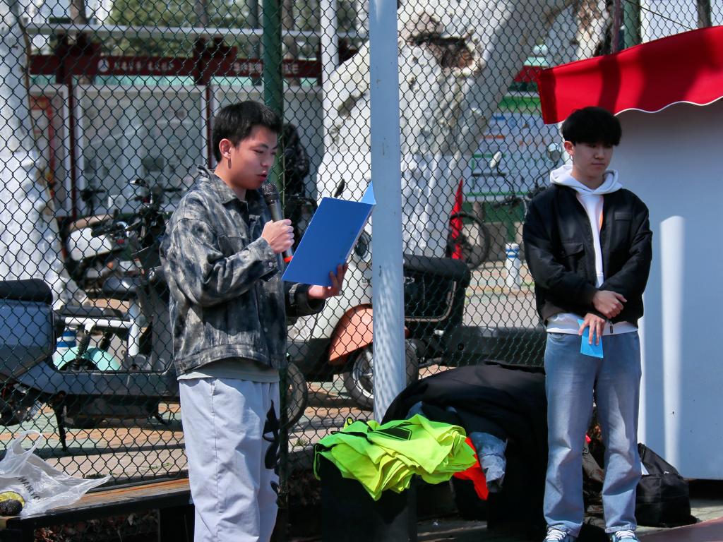 裁判员代表叶欣姝高举右手,承诺“公平公正,恪守规则” ,保证本次友谊赛全程的公正裁决;运动员代表硕2409班刘运泽以昂扬姿态宣誓“尊重对手、全力以赴”,彰显电气学子的体育精神。
