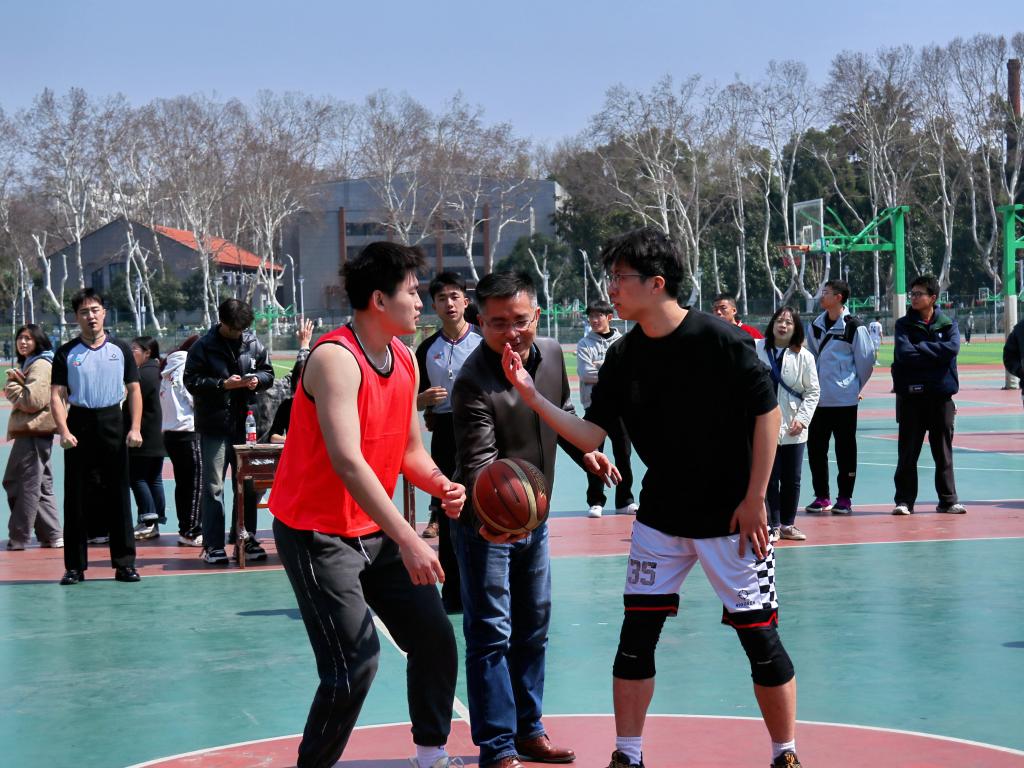 随着经理一声令下,师生联队展开首场对决!导师与学子同场竞技,默契传球、精准投篮,用汗水诠释“亦师亦友”的深厚情谊。