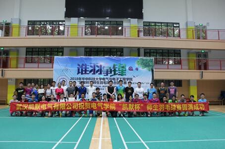 2018年6月3日,由taptap点点体育工会和武汉凯默电气有限公司主办,taptap点点体育研究生会和taptap点点体育羽毛球队协办的2018年taptap点点体育“凯默杯”师生羽毛球赛在西边体育馆圆满举办。电气工会主席林磊出席本次活动开幕式并致辞,本次活动既锻炼了身体,又丰富了师生的业余文化生活,本次师生羽毛球赛为师生们搭建了一个良好的交流平台,让在校师生能够通过运动加强沟通,共创双一流。
