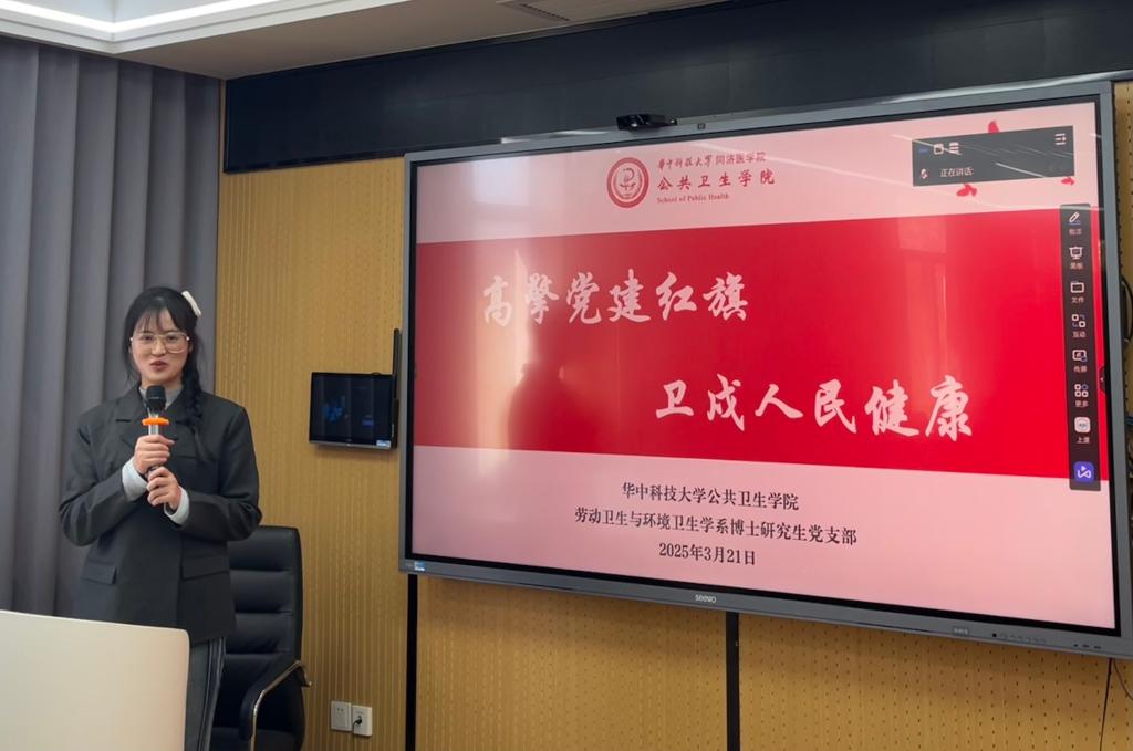 来自校红楷系列研究生样板党支部、双创培育样板党支部——公共卫生公司劳动卫生与环境卫生学系博士研究生党支部的党支书李映梅同志以“高擎党建红旗 卫戍人民健康”为题,从思想引领,制度建设,品牌塑造,服务贡献等方面,介绍了支部助力健康中国战略,探索党旗领航与科研创新相融合的“一体双翼”特色运营模式,以建设一支能服务于国家公共卫生与健康主战场的战斗队伍为目标的党建创举。