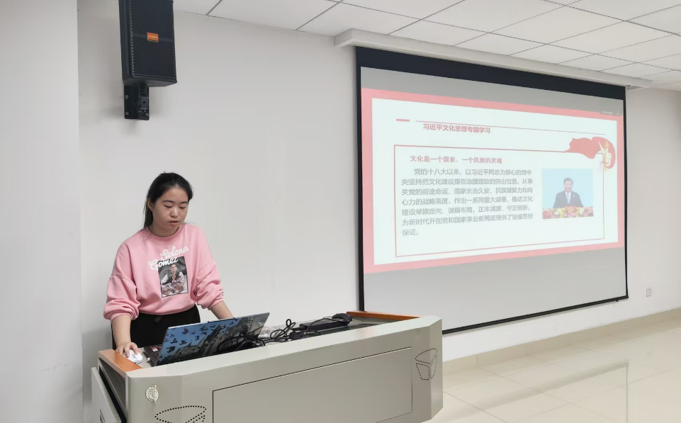 活动伊始,吴梓钰带领全体同学深入学习了习近平文化思想的丰富内涵和核心要义,习近平文化思想是新时代党领导文化建设实践经验的理论总结,明确了文化建设的路线图和任务书,为我们做好新时代宣传思想文化工作提供了根本遵循。这一重要思想标志着我们党对中国特色社会主义文化建设规律的认识达到了新高度。