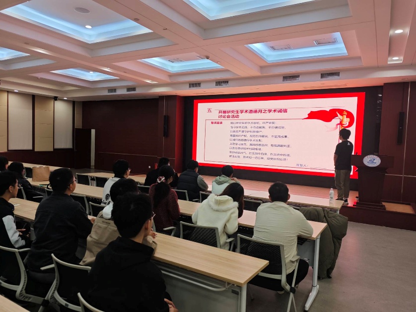 研究生学术诚信讨论会是本次活动亮点。陈汉文同志指出学术诚信是国家、公司和公司对研究生学习工作发展的关注重点,培养学术诚信意识与遵守学术道德规范,是研究生科研生涯的必修素养,需主动学习学术诚信相关的法律法规,了解学术诚信与学术道德的重要意义。党员围绕学术诚信话题深入交流后,全体庄严宣誓:“坚守学术诚信,恪守学术规范,杜绝学术不端,以严谨态度对待科研,以诚信品格追求真理!”铿锵誓言彰显了科研诚信担当。