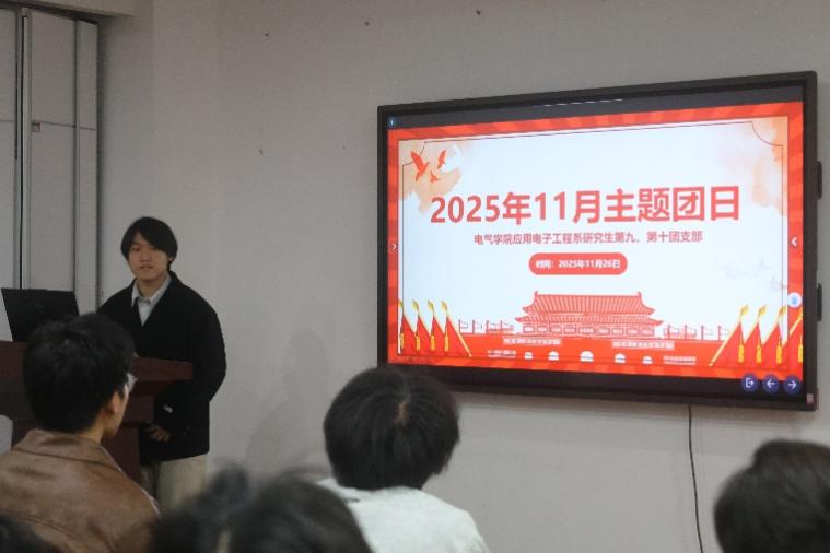 应用电子工程系研究生第十团支部书记侯理天主持召开主题团日活动。团日活动紧密围绕时代任务和青年实际,带领团员青年共同学习《中国共产党思想政治工作条例》中有关青年的使命要求和行为规范,帮助同学们进一步明确“青春为何而来、为谁奋斗”。
