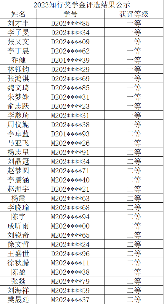 2023年研究生知行优秀奖学金评选结果公示
