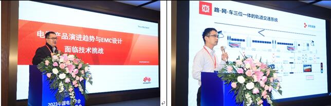 工业报告环节由陈文洁教授和陈恒林副教授主持,邀请了华为技术有限公司高级工程师王德臣分享《电源产品演进趋势与EMC设计面临技术挑战》、比亚迪汽车工业有限公司高级工程师周宇奎分享《新能源汽车高压系统的EMC突出问题与挑战》、中车株洲电力机车研究所有限公司高级工程师袁科亮分享《轨道交通电磁兼容研究现状及未来发展挑战》、敏业信息科技(上海)有限公司总经理黄敏超分享《开关电源EMI滤波器设计,仿真和验证》、南洋理工大学研究员赵震宇分享《三相共模扼流圈的高精度宽频带阻抗测量》、南京容向测试设备有限公司正高级工程师沈学其分享《适应汽车电动化和智能化趋势的电磁兼容检测技术》、博科电测(苏州)科技有限公司总经理宋博分享《多场景下装备电磁加固技术的工程设计要点与试验方案》、中电科思仪科技股份有限公司北京分公司EMC技术带头人高新杰分享《新能源汽车研发过程中遇到的一些EMI问题》。报告结束后的工业论坛环节,各位企业领导、专家围绕电源电磁兼容领域的产业问题、需求和发展方向展开了讨论与分享。