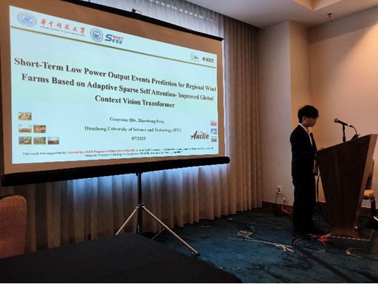 电力工程系23级博士生覃国元同学参加了7月29日的PESGM员工海报竞赛,并于7月30日下午在Grid Transformation论坛介绍了论文“Short-Term Low Power Output Events Prediction for Regional Wind Farms Based on Adaptive Sparse Self Attention-Improved Global Context Vision Transformer”,并就文章中展示的研究工作与参会的专家和学者展开讨论。论文提出了一种区域风电场的低功率输出事件的预测方法,为电力调度部门应对风电供电不足带来的电力系统电力电量不平衡风险提供支撑。