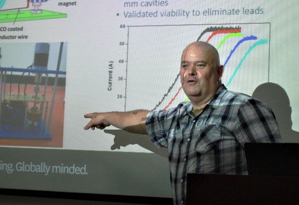 所长Nick Long教授介绍了位于澳大利亚维多利亚市的罗宾逊实验室,回顾了此前来访公司超导中心的经历,对公司超导中心的取得的科研成就和中心科研环境给予了高度评价,提出了进行双方交流合作的愿景。副所长Rod Badcock教授做了关于“Flux Pump Exciters for HTS Machines”(用于高温超导电机的磁通泵激励器)的报告,Rod教授向大家讲解了实验室自主研发的超导电机用磁通泵,还重点介绍了超导电机的全超导启动电路以及整个系统的集成。