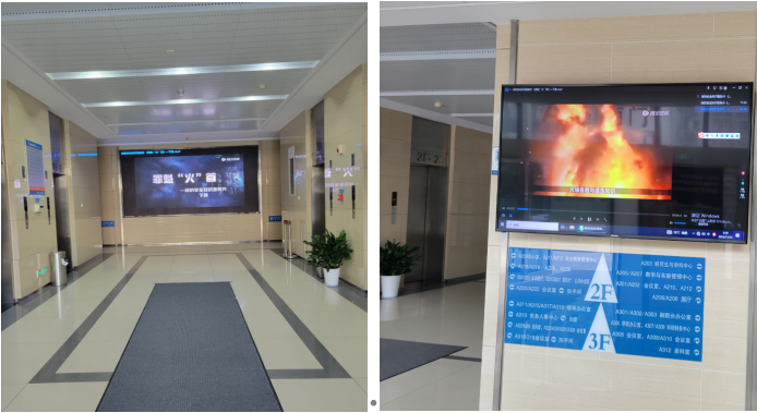 一是做到宣传标识全覆盖,视频展播强警示。公司在电气大楼、西二楼、大禹楼、应电楼、高压楼、西三楼、动模楼、东十五楼以及强磁场中心等关键区域,精心设置了醒目且设计精良的消防宣传牌,在多个屏幕上循环播放消防安全视频,生动展示消防安全的核心要义、火灾的巨大危害以及正确的预防和应对策略,时刻警示师生消防安全不容忽视,让消防安全意识深入人心,使消防安全知识在潜移默化中得到广泛传播与深刻理解。