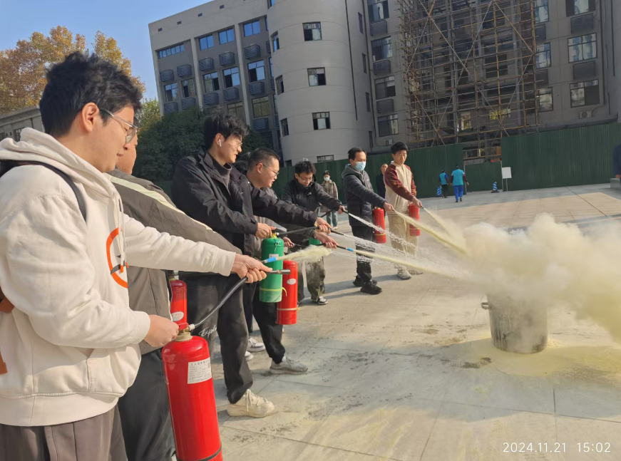 三是实战演练固技能,亲身体验促成长。讲座结束后,实战演练紧锣密鼓地展开。保卫处熊祥老师组织的电气大楼南广场消防实战演练活动如火如荼进行。熊老师亲自示范干粉和水基灭火器的使用规范,从日常检查的要点,到操作时的姿势、角度,再到精准灭火的关键,一一详细讲解并标准示范。老师们踊跃参与实操体验,真切地掌握了灭火器的使用方法。毕竟,灭火器操作虽看似简易,实则细节决定成败,只有通过实战演练,才能在火灾突发时避免慌乱,抓住灭火良机,提升公司整体火灾应对水平。实战演练有效地弥补了理论知识与实际操作之间的差距,使师生员工真正将消防安全技能内化为自身的应急本领。