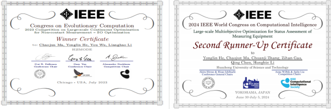 科研创新,勇攀学术高峰。近五年来,何成博士发表高水平SCI期刊论文40余篇,其中中科院一区论文22篇,授权发明专利15项(牵头成果转化3项),也获得了多项学术荣誉,如2021年ACM China Council SIOGBIO Chapter(ACM中国理事会专业分会中国计算机生物医学专业分会)新星奖,2023-2024年连续入选斯坦福/爱思唯尔全球前2%顶尖科学家榜单。他积极开展学术服务工作,担任3本SCI期刊编委,组织国际会议分会场15场,牵头组织SCI专刊4期,推动了演化计算领域国际合作。何成博士积极搭建国际学术桥梁,努力拓展学术服务新格局,助力提升学科国际影响力,在IEEE计算智能协会国际大会上,他牵头组织分会与竞赛15场次。他在安徽大学、西湖大学等高校分享前沿成果,展现了华中卓越学者青年岗的风采。何成博士受邀在DOCS 2024(第6届数据驱动的复杂系统优化国际会议)、AJCAI 2024(第36届澳大利亚人工智能联合会议)等多个国际会议作大会报告,提升了公司的影响力,为全球相关领域的发展贡献了中国智慧。