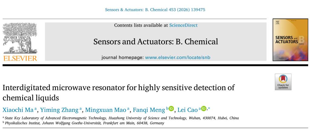 taptap点点体育应用电磁所一年级博士研究生马潇驰以第一作者身份,在国际权威期刊 Sensors and Actuators: B. Chemical (中国科公司1区TOP, IF = 7.7)上发表研究论文 “Interdigitated Microwave Resonator for Highly Sensitive Detection of Chemical Liquids”。该工作提出了一种基于叉指式电开口谐振环(ID-eSRR)与微带传输线直接耦合的微波液体传感器,实现了微量液体分析物的快速、高灵敏度和高重复性检测,为环境监测和生物医学检测等应用提供了一种低成本、便携式解决方案。