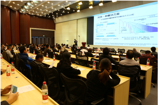 本次研讨会中,袁小明教授报告了“系统分析的幅相动力学方法”,基于系统论和力学化的研究方法对系统进行研究,袁教授首先介绍系统论和力学化本质及幅相动力学思路和设备和网络幅相运动方程,然后将这种理论应用到解决风机的次同步震荡建模上面,这种思路让电力电子从事者耳目一新并引起了热烈讨论。蒋栋教授报告了“电力电子化对电力系统电磁干扰的挑战与思考,蒋教授从EMI的产生到传导路径对电磁干扰进行了分析;指出了研究EMI的两个难点,一是包含寄生参数的传导路径分析建模和抑制;一是由PWM和器件开关特性共同决定的噪声源的分析建模和抑制。然后分别从滤波器设计、参数提取、门极驱动、调制、拓扑结构等方面介绍了EMI的抑制方法。